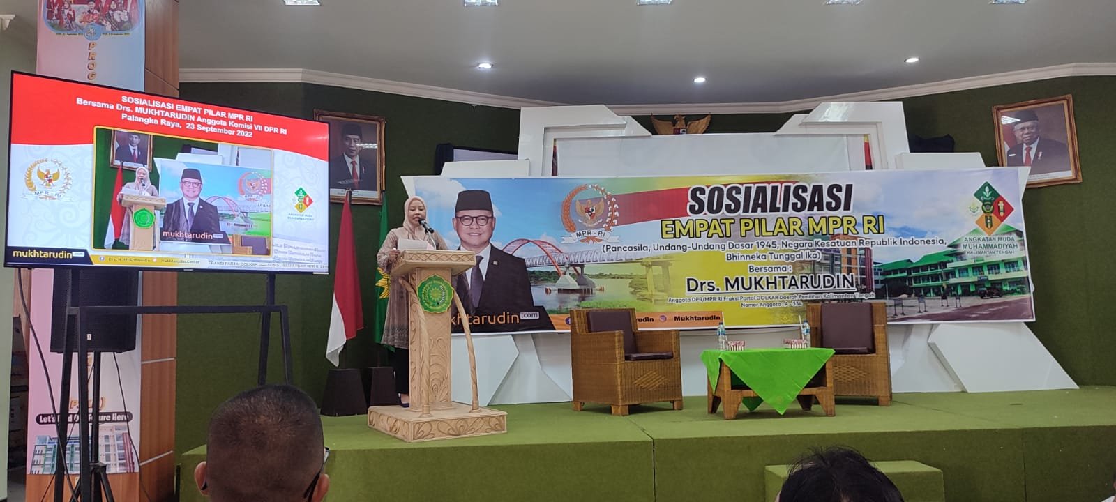 Drs. Mukhtarudin Anggota DPR RI Komisi VII Fraksi Partai Golkar Daerah Pemilihan Kalimantan Tengah laksanakan Sosialisasi Empat Pilar Kebangsaan pada Jum’at (23/9/2022) bertempat di Aula Utama Universitas Muhammadiyah Palangkaraya (UMPR), jalan RTA. Milono KM 1,5 Palangka Raya.